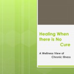 If you are not suffering with a chronic illness you know someone that does. Empowering individuals and families who live with a chronic illness has been a high interest for me. I have worked with support groups for individuals and couples. Last spring I was invited to give a presentation on the subject of Chronic Illness, sponsored by the Boone Center for Family Studies, at the Pepperdine Bible Lectures. The 45 minute video of the presentation with the accompanying handouts and power point is now available to educate and encourage. Healing When There is No cure is a wellness view of chronic illness. A wellness perspective focuses on passion and purpose not pain and suffering.